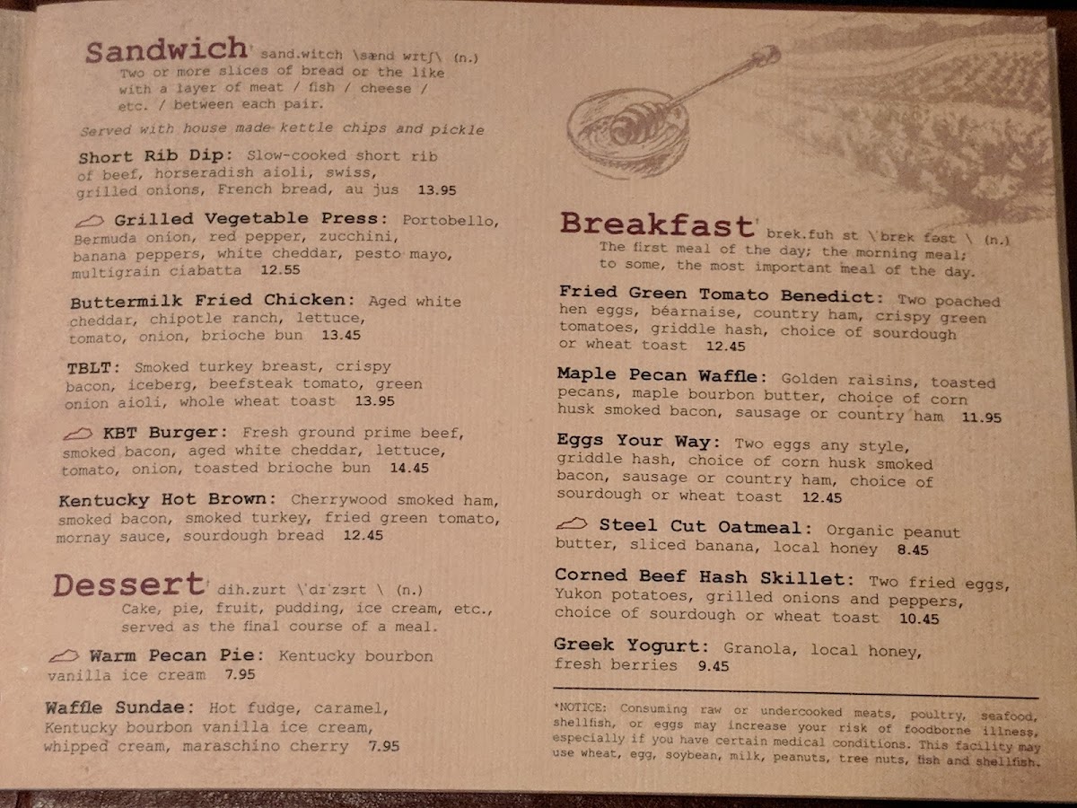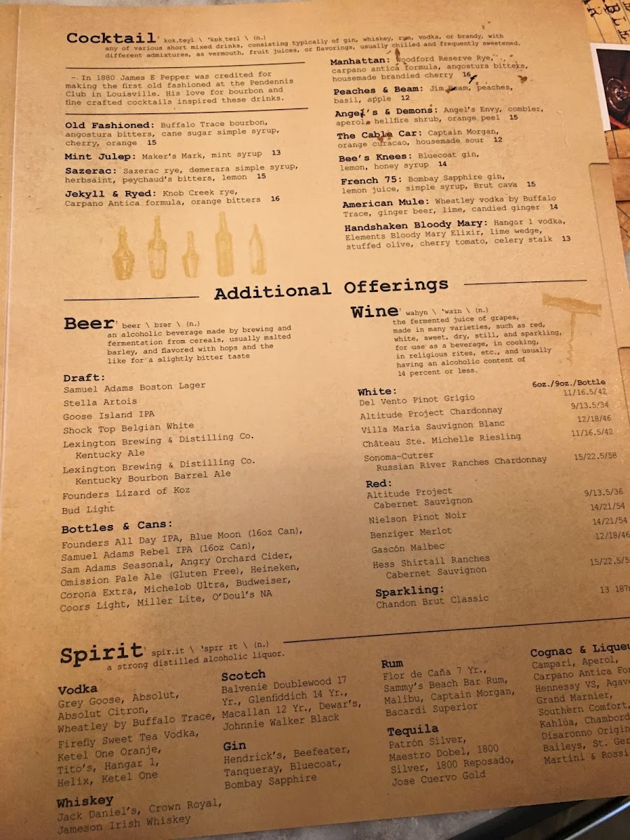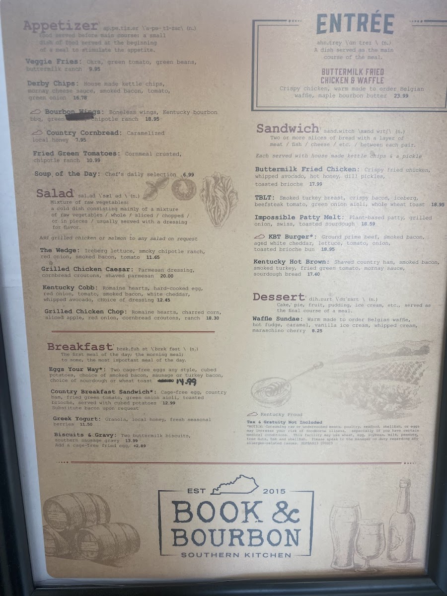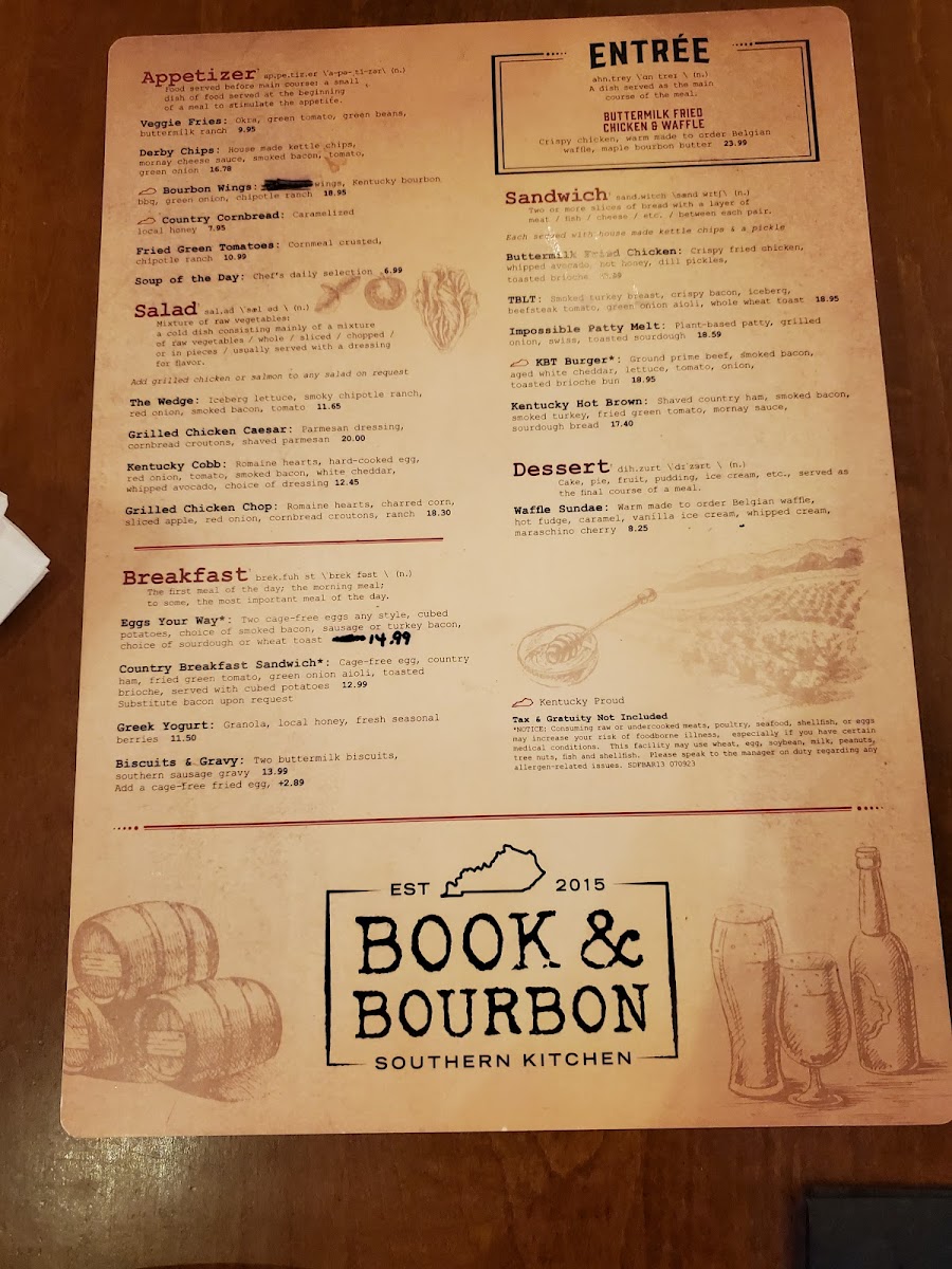 Book & Bourbon Southern Kitchen - Louisville Airport Menu